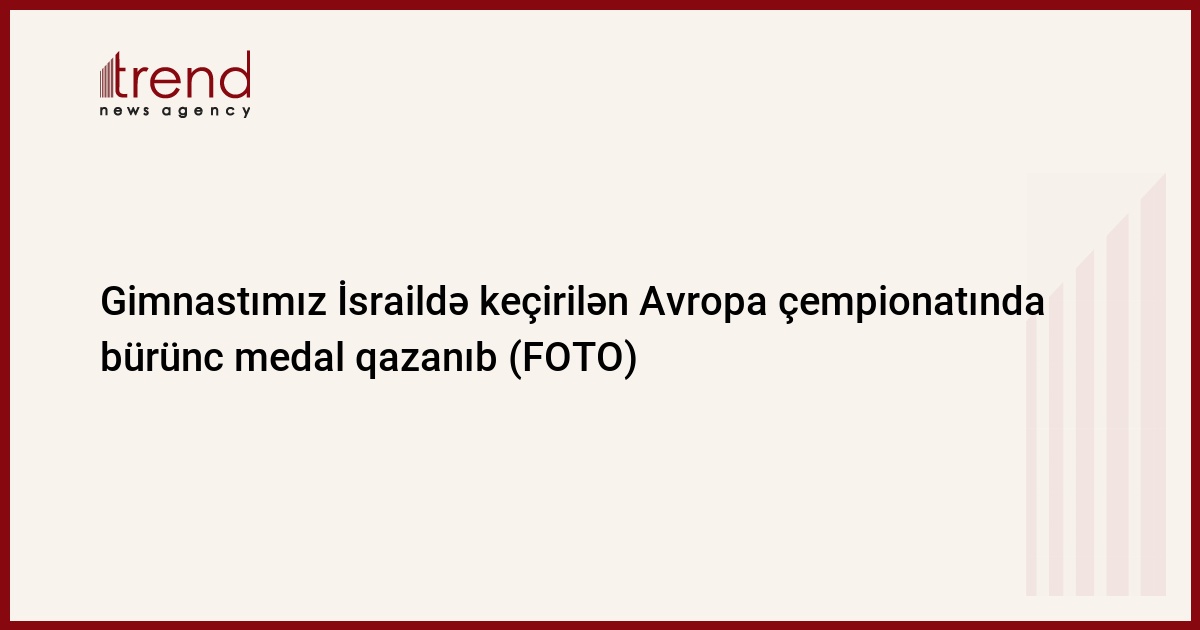 Azərbaycan gimnastı Kamilla Qafarova İsrailin Təl-Əviv şəhərində keçirilən bədii gimnastika üzrə Avropa çempionatında bürünc medal qazanıb.