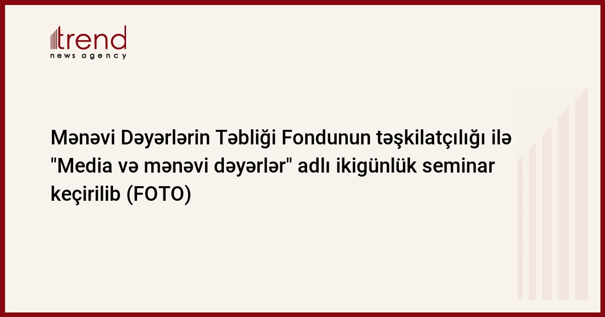16-18 iyul tarixlərində Mənəvi Dəyərlərin Təbliği Fondunun maliyyə və təşkilati dəstəyi, Oğuz şəhəri "Cümə" məscidi dini icmasının təşkilatçılığı ilə Oğuz rayonunda bir sıra mətbuat nümayəndələri üçün "Media və mənəvi dəyərlər" adlı ikigünlük seminar keçirilib.