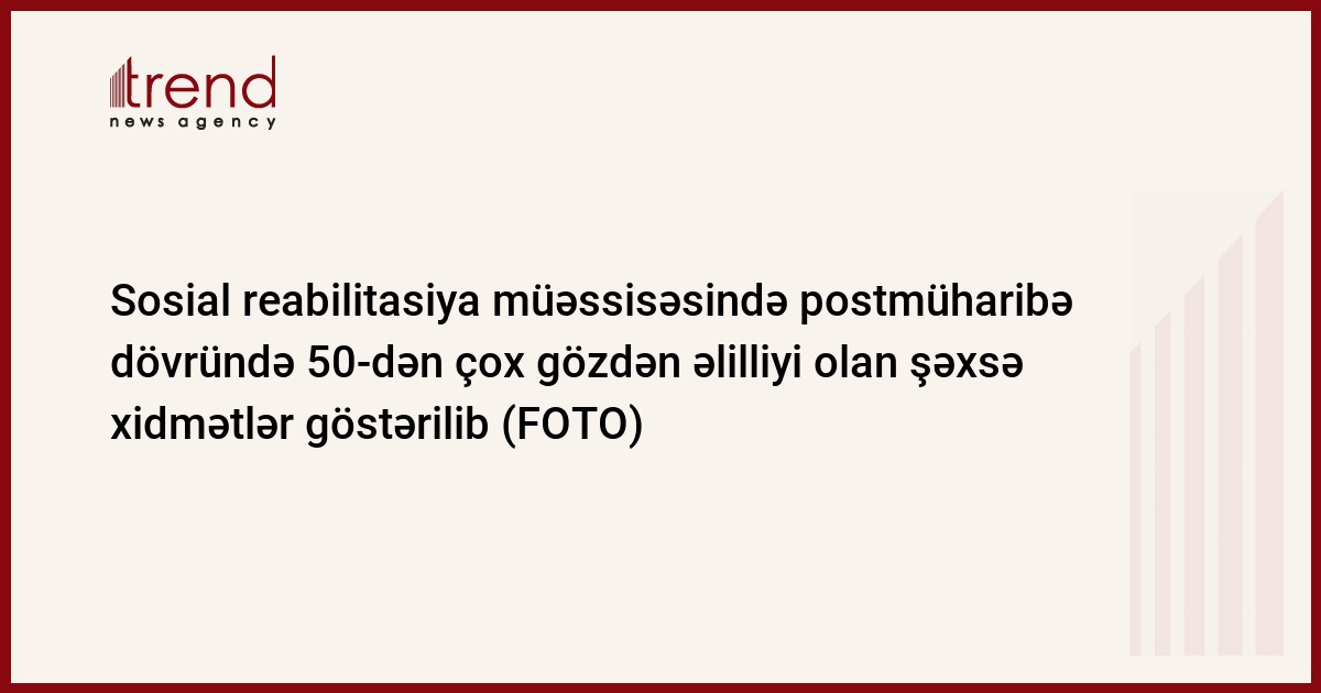 Əmək və Əhalinin Sosial Müdafiəsi Nazirliyinin tabeliyindəki Sosial Xidmətlər Agentliyinin həssas əhali qruplarından olan şəxslər üçün Sığınacaq və Sosial Reabilitasiya Müəssisəsində postmüharibə dövründə Vətən müharibəsi əlilləri da daxil olmaqla ümumilikdə 52 nəfər gözdən əlilliyi olan şəxsə xidmət göstərilib.