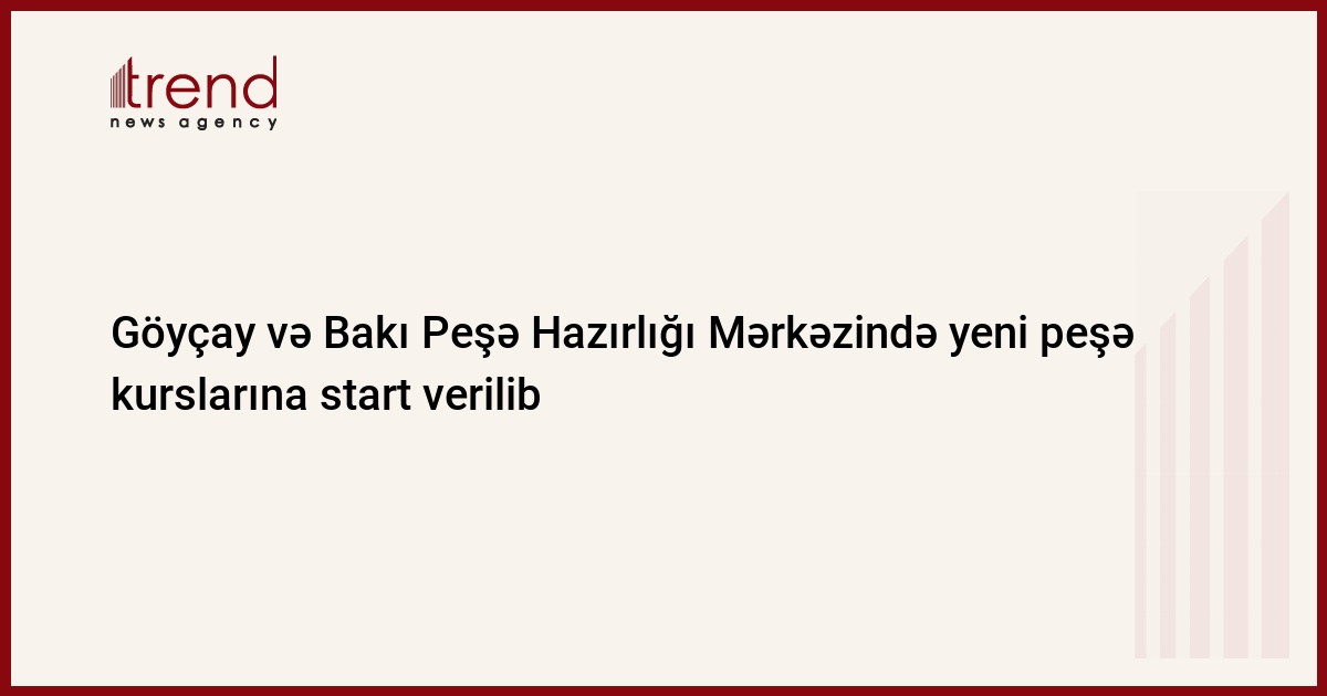 Əmək və Əhalinin Sosial Müdafiəsi Nazirliyinin tabeliyində Dövlət Məşğulluq Agentliyinin Göyçay və Bakı Peşə Hazırlığı Mərkəzində yeni peşə kurslarına start verilib.