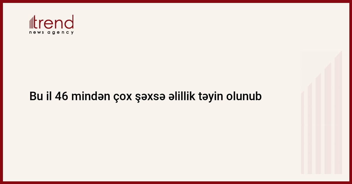 Əmək və Əhalinin Sosial Müdafiəsi Nazirliyinin tabeliyindəki Dövlət Tibbi-Sosial Ekspertiza və Reabilitasiya Agentliyi tərəfindən 2022-ci ilin yanvar-sentyabr ayları ərzində 46,5 min şəxsə əlillik təyin edilib.
