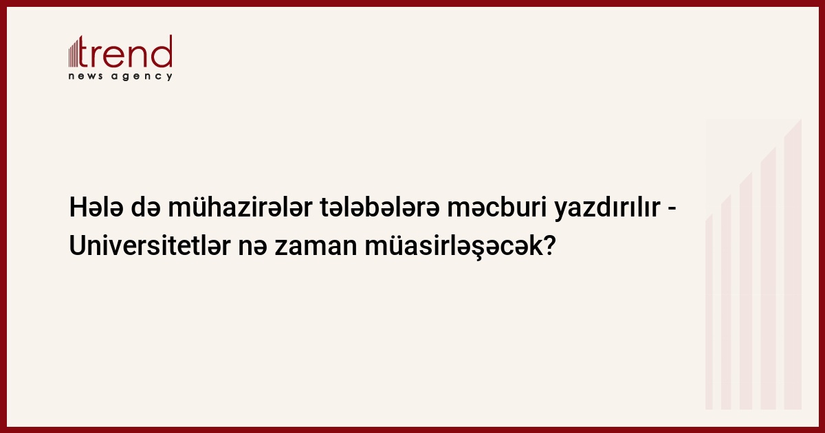 Ölkəmizdə fəaliyyət göstərən ali təhsil müəssisələrinin əksəriyyətində keçmişdən bugünə qədər davam etdirilən bəzi ənənələr mövcuddur. Bunlardan biri də köhnə qaydalarda aparılan mühazirələrdir. Hər kəsə məlumdur ki, bəzi müəllimlər hələ də ötən dövrlərdən qalan, saralmış vərəqlərdə yazılan mühazirələrlə dərs prosesini davam etdirir. Bu kimi hallarda hətta müəllimlər tələbələrə mühazirələri yazmağı məcbur edirlər. Hətta bəzən mühazirəni yazmayan tələbənin imtahanda aşağı qiymət alacağı ilə bağlı hədə-qorxu gəlirlər.