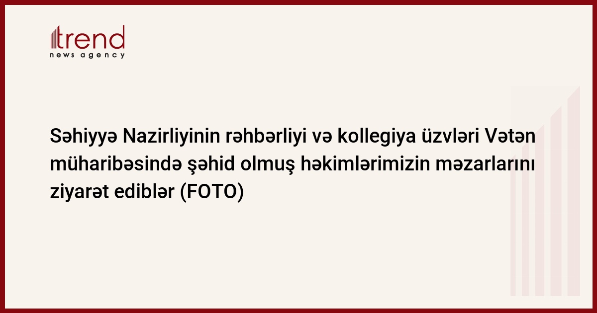 Böyük Qələbə Gününün 2-ci ildönümü ərəfəsində səhiyyə naziri Teymur Musayev və nazirliyin kollegiya üzvləri İkinci Fəxri xiyabanda Vətən müharibəsi şəhidlərinin məzarlarını ziyarət ediblər.
