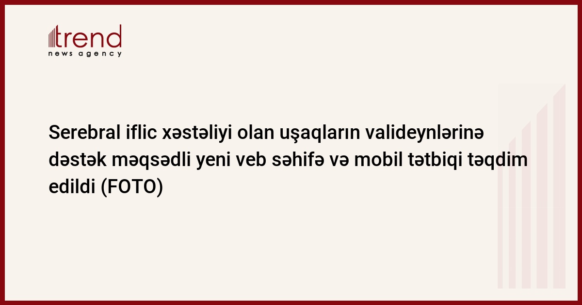 Qeyd olunub ki, təqdim edilən www.serebralders.az veb səhifəsi və xüsusi mobil tətbiqi də serebral iflic xəstəliyindən əziyyət çəkən uşaqların valideynlərinə, onların bacarıqlarının artırılmasına, bu istiqamətdə elektron resurslardan istifadənin genişlənməsinə dəstək məqsədi daşıyır.