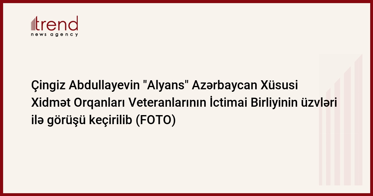 DTX-nin Mədəniyyət Mərkəzində Xalq yazıçısı Çingiz Abdullayevin "Alyans" Azərbaycan Xüsusi Xidmət Orqanları Veteranlarının İctimai Birliyinin üzvləri ilə görüşü keçirilib.