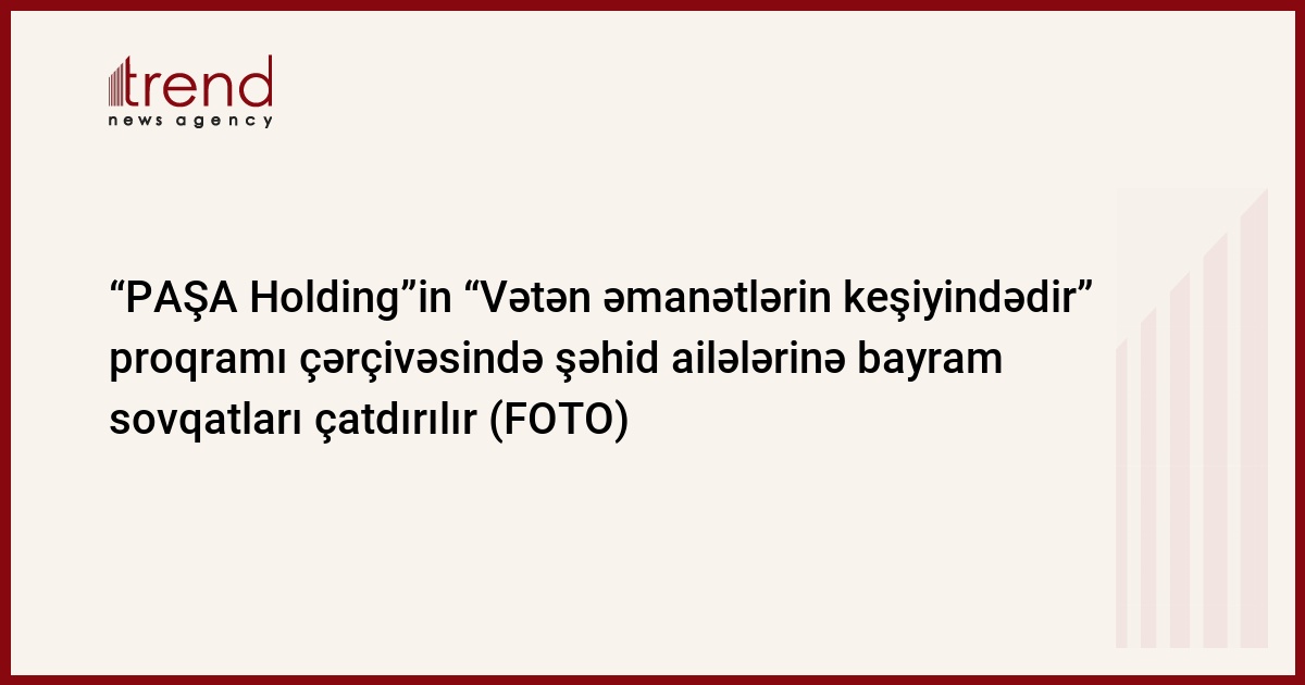 Trend-in məlumatına görə, Proqram çərçivəsində, Yeni il, Novruz Bayramı, Qurban Bayramı, Ramazan Bayramı və Zəfər günü münasibətilə şəhid övladı olan ailələrə PAŞA Holding və Bravo supermarketlər şəbəkəsi tərəfindən bayram sovqatlarının təqdim edilməsi nəzərdə tutulub.