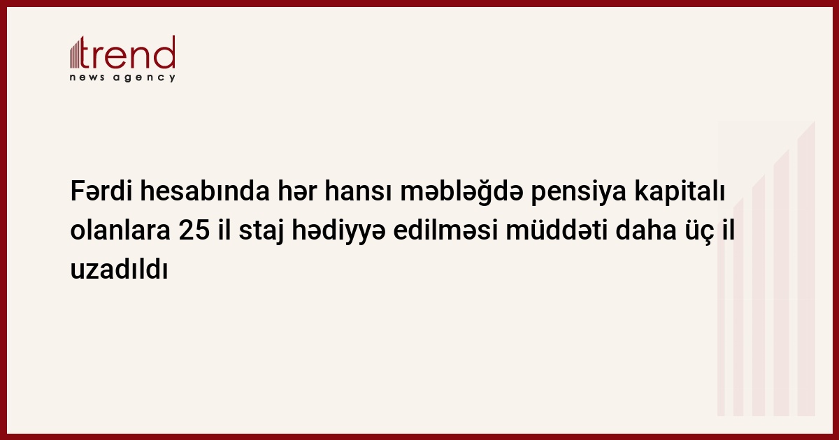 Təsdiqlənən yeni Qanun 25 il sığorta stajının hədiyyə edilməsi müddətinin 3 il uzadılmasını nəzərdə tutur. Yəni, qeyd edilən 25 il sığorta stajının hər il üçün 1 il azaldılması artıq 2023-cü ildən deyil, 2026-cı ildən tətbiq ediləcək.