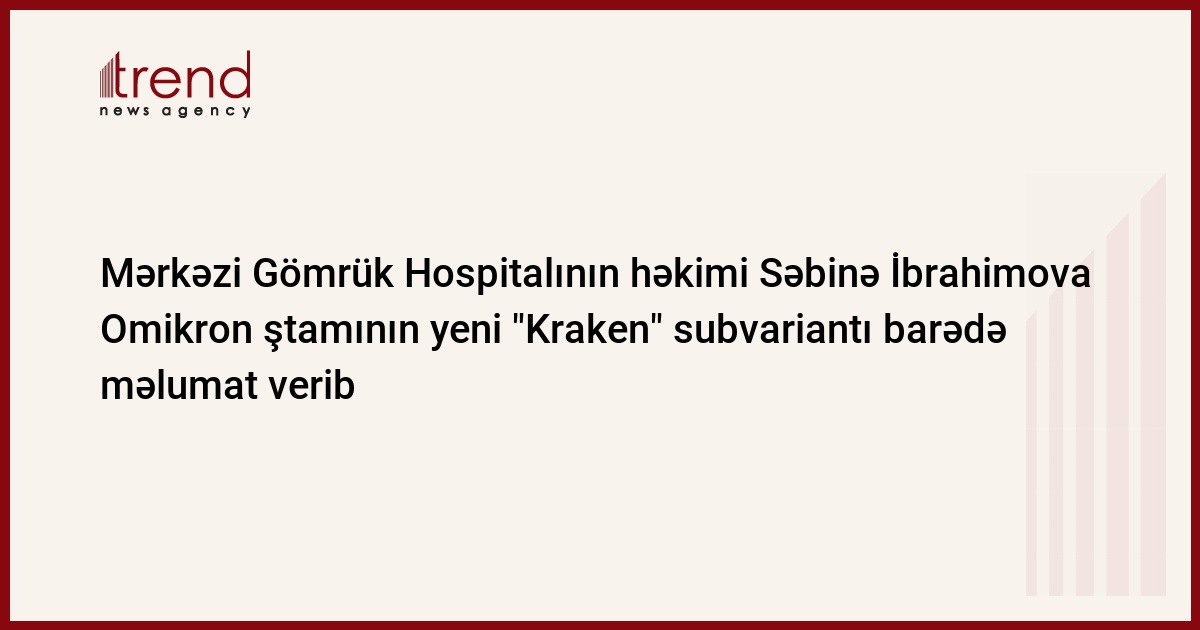 Mərkəzi Gömrük Hospitalının Tibbi Laboratoriya şöbəsinin həkim-mikrobioloqu Dr.Səbinə İbrahimova “Həkim məsləhəti” rubrikasında “Omikron ştamının yeni "Kraken" adlı subvariantı” barədə ətraflı məlumat verib.
