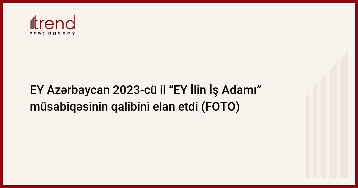 EY Azərbaycan şirkəti böyük məmnuniyyətlə “EY İlin İş Adamı” mükafatının qalibini elan etdi. Bu mötəbər müsabiqə Azərbaycanın iş adamları arasında artıq dördüncü ildir ki, keçirilir. Azərbaycan Respublikasının Kiçik və Orta Biznesin İnkişafı Agentliyinin (KOBİA) tərəfdaşlığı ilə keçirilən müsabiqəyə ABB və bp sponsor dəstəyi göstərmişdir. Veysəloğlu Şirkətlər Qrupu da həmçinin müsabiqəyə maliyyə dəstəyi vermişdir. EKVITA konsaltinq şirkəti və Azərbaycan Respublikasının İxracın və İnvestisiyaların Təşviqi Agentliyi (AZPROMO) müsabiqənin tərəfdaşları sırasındadır.