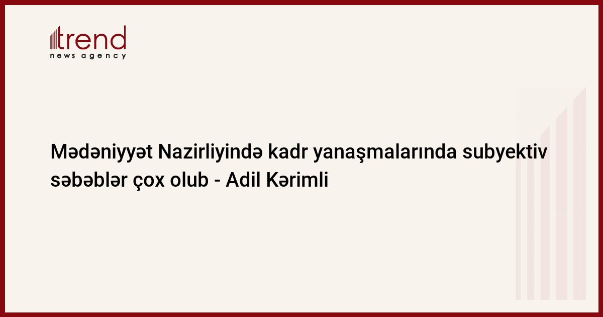 Trend xəbər verir ki, bunu mədəniyyət naziri vəzifəsini müvəqqəti icra edən, mədəniyyət nazirinin birinci müavini Adil Kərimli bu gün Milli Məclisdə keçirilən dinləmələrdə deyib.
