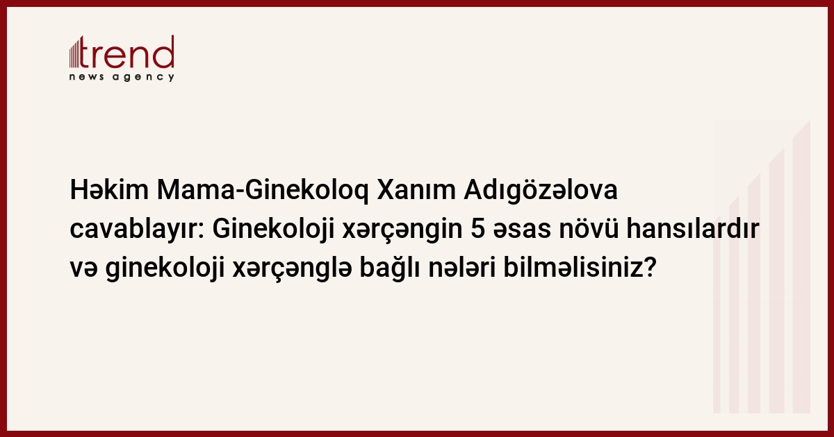 Bu yazıda isə həkim mama-ginekoloq Xanım Adıgözəlovanın ginekoloji xərçəngin 5 əsas növü ilə bağlı verdiyi məlumatlar yer almışdır.