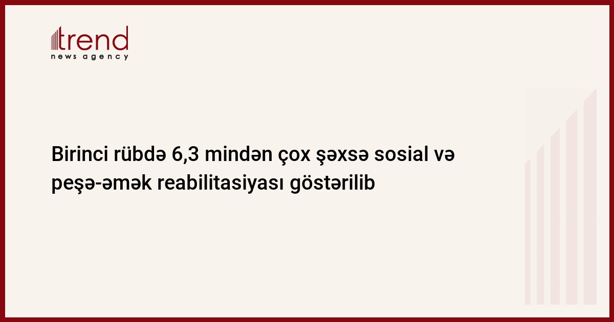 Əmək və Əhalinin Sosial Müdafiəsi Nazirliyinin tabeliyində Sosial Xidmətlər Agentliyi tərəfindən bu ilin ilk rübündə 6 335 şəxs sosial və peşə-əmək reabilitasiyası xidməti ilə təmin olunub.