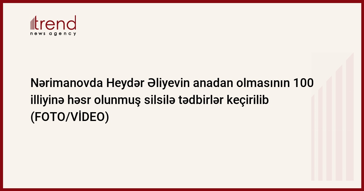 Nərimanov rayonu İcra Hakimiyyətinin təşkilatçılığı ilə Azərbaycan xalqının Ümumimillil Lideri, Ulu Öndər, görkəmli siyasi və dövlət xadimi Heydər Əliyevin anadan olmasının 100 illiyinə həsr olunmuş silsilə tədbirlər keçirilib.