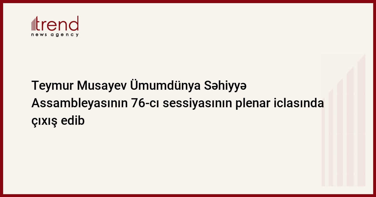 Azərbaycanın səhiyyə naziri Ümumdünya Səhiyyə Assambleyasının 76-cı sessiyasının plenar iclasında çıxış edib.