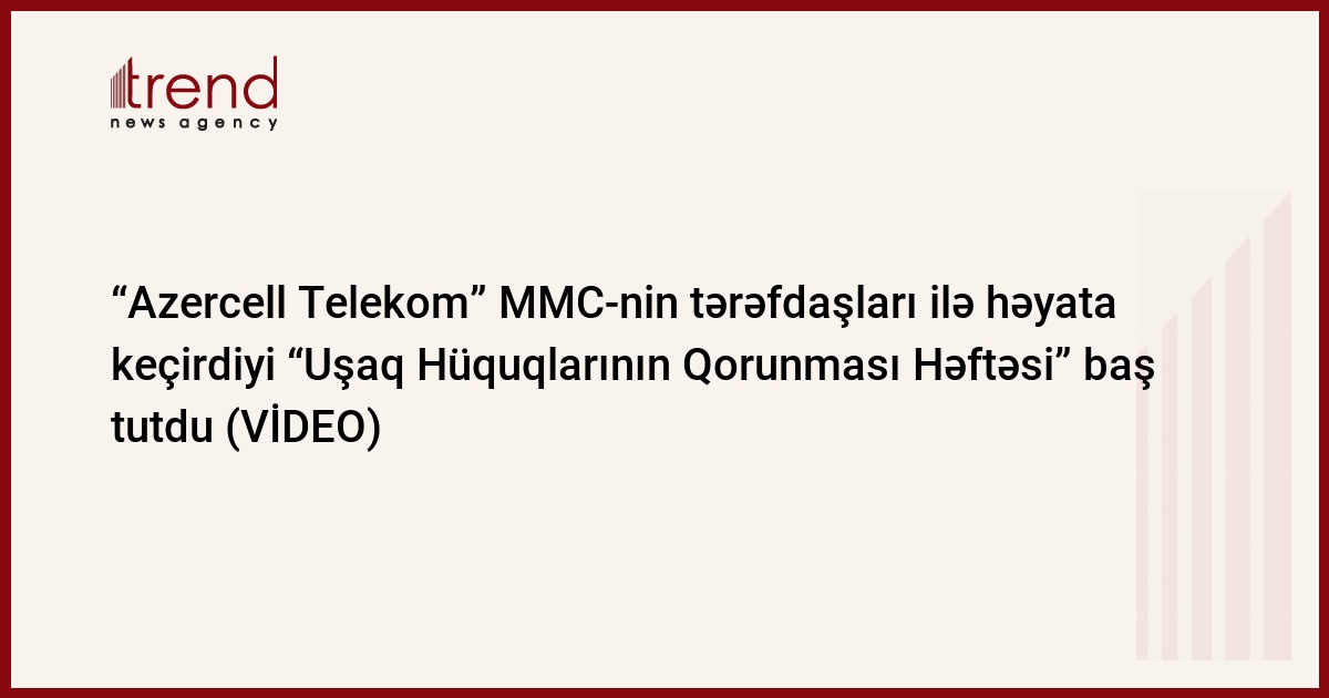 “Azercell Telekom” MMC Ümidli Gələcək Sosial Təşəbbüslər İctimai Birliyi, AR Ədliyyə Nazirliyi, Ailə Qadın və Uşaq Problemləri üzrə Dövlət Komitəsi, UNİCEF Azərbaycan və Avropa İttifaqı ilə birgə əməkdaşlıqda 1 İyun Uşaqların Beynəlxalq Müdafiəsi Günü münasibətilə uşaqlar üçün silsilə tədbirlər həyata keçirdi.