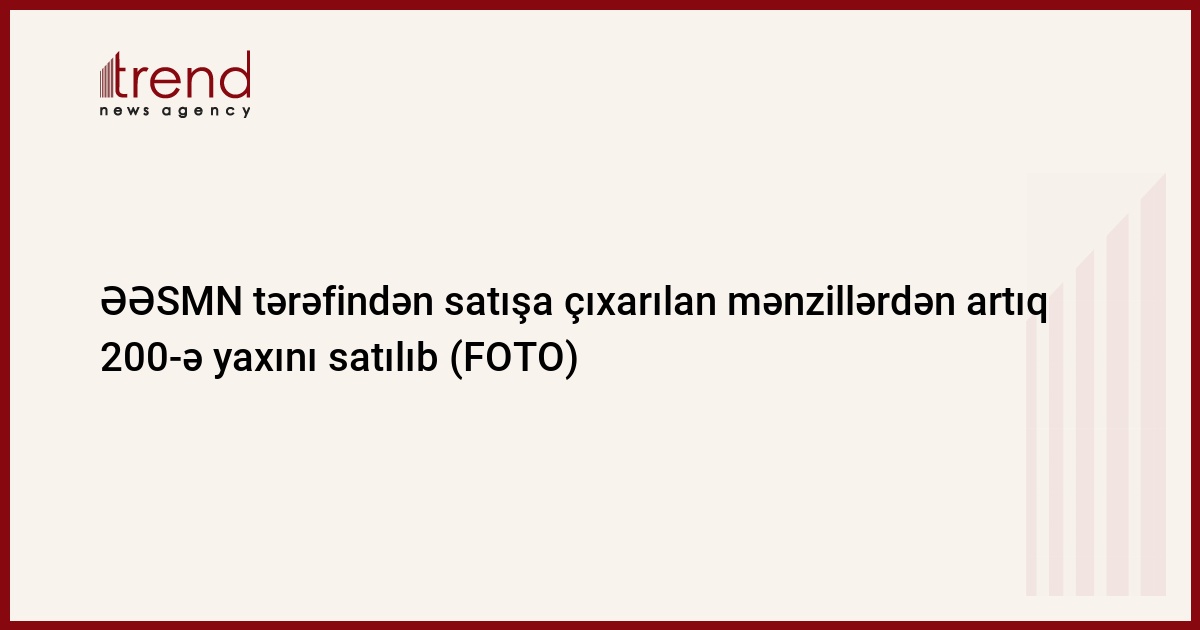 Nazirlikdən Trend-ə verilən məlumata görə, ƏƏSMN tərəfindən ms.sosial.gov.az portalı üzərindən onlayn satışı həyata keçirilən mənzillərdən artıq 200-ə yaxını satılıb.