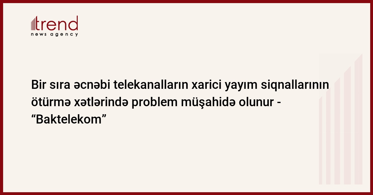 Trend xəbər verir ki, məlumatda son günlərdə bir sıra Rusiya və digər əcnəbi telekanalların xarici yayım siqnallarının ötürmə xətlərində problemlər müşahidə olunduğu bildirilir.