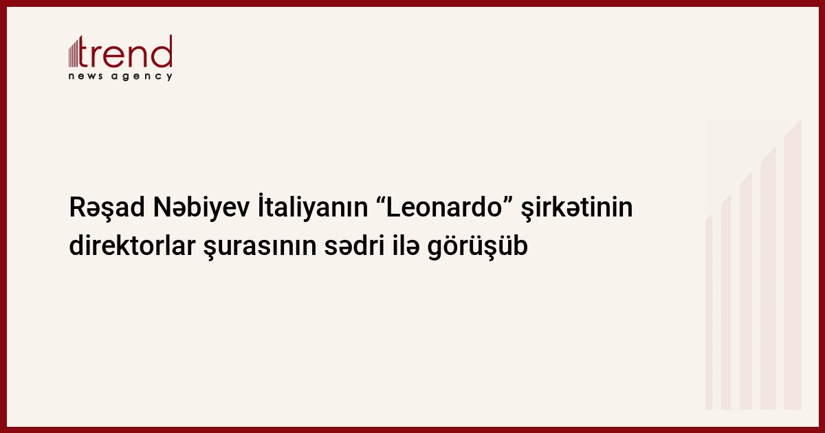 Rəqəmsal inkişaf və nəqliyyat naziri Rəşad Nəbiyev aerokosmos, müdafiə və təhlükəsizlik sahəsində dünya nəhənglərindən olan İtaliyanın “Leonardo” şirkətinin direktorlar şurasının sədri Stefano Pontekorvo ilə görüşüb.