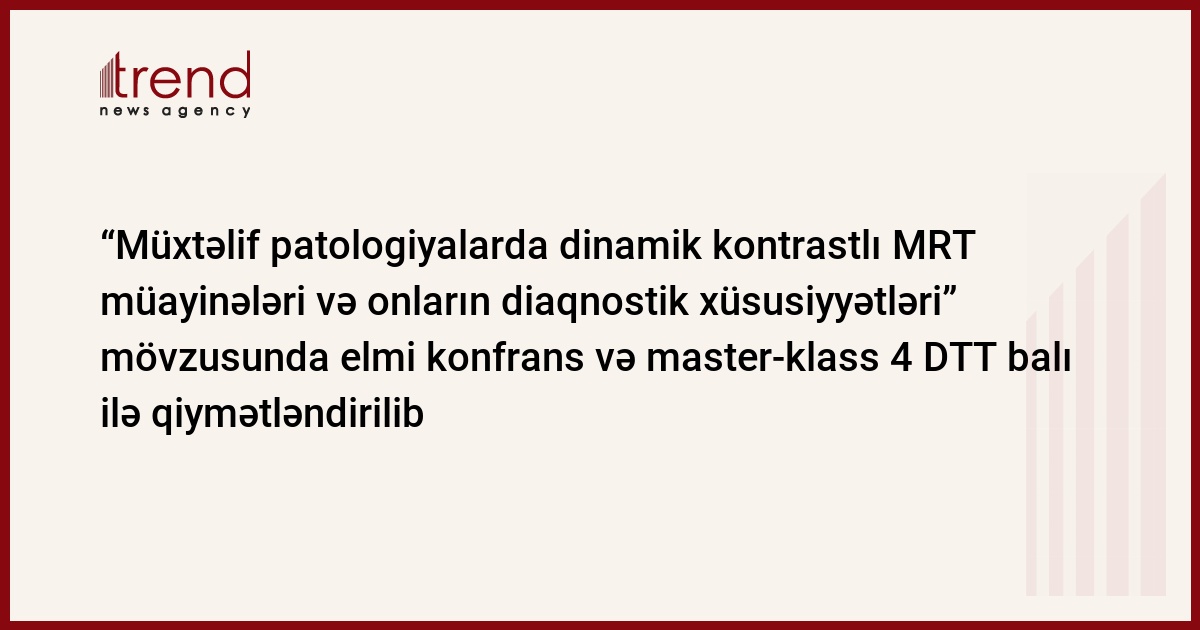 Sabah Dövlət Gömrük Komitəsinin Tibbi Xidmət İdarəsinin Elmi-Təcrübi və Tədris Mərkəzinin, Mərkəzi Gömrük Hospitalının və “Bayer” şirkətinin birgə təşkilatçılığı ilə “Müxtəlif patologiyalarda dinamik kontrastlı MRT müayinələri və onların diaqnostik xüsusiyyətləri” mövzusunda elmi konfrans və master- klass Səhiyyə Nazirliyinin "Davamlı Tibbi Təhsil üzrə elm və tədris tədbirlərinin akkreditasiya Qaydaları" əsasında akkreditasiya olunaraq 4 DTT balı ilə qiymətləndirilib.