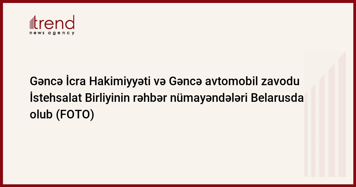 Gəncə avtomobil zavodununun direktoru Kamran Nəzərov müəssisənin 2006-cı ildən başlayaraq Belarusun “Moqilyovtransmaş”, “Minsk təkərli dartıcılar” zavodu, “Bobruysk” ehtiyat hissələri və avadanlıqlar istehsalı zavodu, “Qomselmaş”, “Belkommunaş” Açıq Tipli Səhmdar cəmiyyətləri ilə sıx əməkdaşlıq etdiyini qeyd edib.