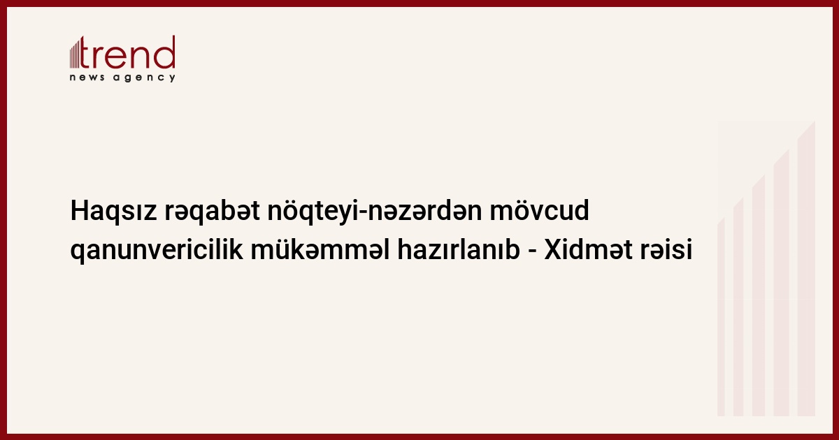 Trend-in məlumatına görə, bunu İqtisadiyyat Nazirliyi yanında Antiinhisar və İstehlak Bazarlarına Nəzarət üzrə Dövlət Xidmətinin rəisi Məmməd Abbasbəyli parlamentdə Rəqabət Məcəlləsinin layihəsi ilə bağlı ictimai dinləmələr zamanı deyib.