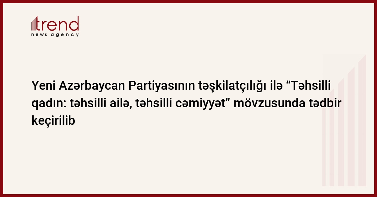 Oktyabrın 6-da Yeni Azərbaycan Partiyasının (YAP) Mərkəzi Aparatı və YAP Yasamal rayon təşkilatı tərəfindən “Təhsilli qadın: təhsilli ailə, təhsilli cəmiyyət” mövzusunda tədbir keçirilib.