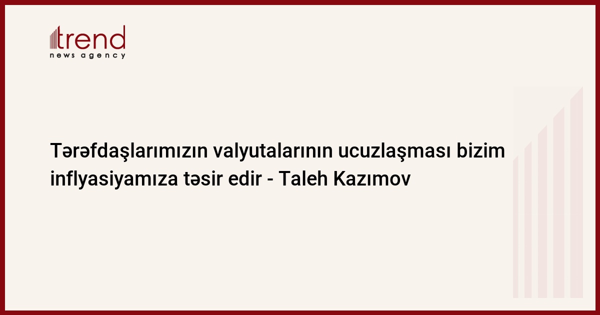 "Ticarət tərəfdaşlarımızın valyutalarının kəskin dəyişiminin və ya ucuzlaşmasının birbaşa bizim valyuta bazarımıza təsiri yoxdur, bizim inflyasiyamıza təsiri var. Ticarət tərəfdaşlarımızın yerli valyutaları ucuzlaşanda qısa müddətdə, yəni növbəti 3-6 ay bizim inflyasiyamız azalır, çünki o ölkələrdən idxal olunan mallar daha da ucuz olur.