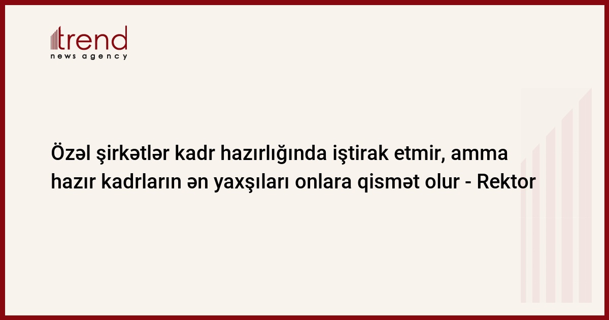 Digər tərəfdən, ali təhsil müəssisələrinin tələbələri üçün təcrübə keçmək formal xarakter daşıyır. Təcrübə keçən tələbəyə sənayedə diqqət lazımi səviyyədə olmur. Bu barədə düşünmək lazımdır. Təcrübəyə keçən tələbələr selektiv şəkildə getməlidir, yoxsa hamı birdən göndərilməlidir? Çünki təcrübə keçmək kadr hazırlığında çox önəmli rol oynayır. Özəl şirkətlərin özləri kadr hazırlığında bilavasitə iştirak etmir. Yəni, maliyyə ayırmırlar. Hazır kadrların ən yaxşıları isə onlara qismət olur. Bu yaxşıdır. Amma özəl sektor da prosesdə iştirak etsə, kadr hazırlığına töhfə vermiş olarlar", - deyə o əlavə edib.
