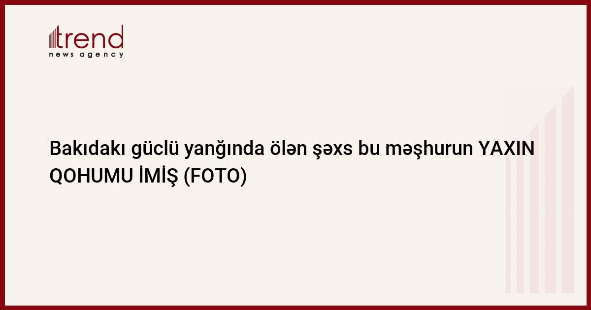 Trend xəbər verir ki, yanğında vəfat edən şəxs mərhum Xalq artisti Ramiz Novruzun qaynıdır.
