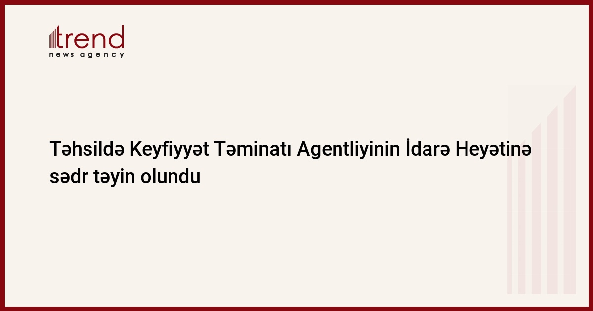 Elm və təhsil naziri Emin Əmrullayevin müvafiq əmri ilə Tural Əhmədov Təhsildə Keyfiyyət Təminatı Agentliyinin İdarə Heyətinin sədri təyin olunub.