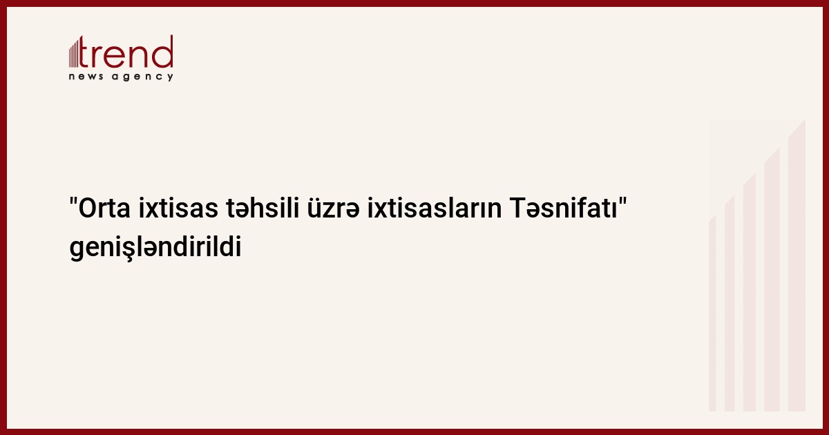 Azərbaycan Nazirlər Kabinetinin 2020-ci il 17 aprel tarixli 140 nömrəli Qərarı ilə təsdiq edilmiş “Orta ixtisas təhsili üzrə ixtisasların Təsnifatı”nda dəyişiklik edilib.
