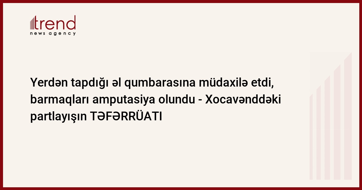"Arıçılıq təsərrüfatı ilə məşğul olan 1996-cı il təvvəllüdlü Ələsgərov Samir Füzuli oğlu arı yeşiklərini yığarkən yerdən tapdığı əl qumbarasının partladıcısına müdaxilə zamanı baş verən partlayış nəticəsində sağ əlindən xəsarət alıb. Zərərçəkən şəxsin sağ əlinin 3 barmağı amputasiya olunub.