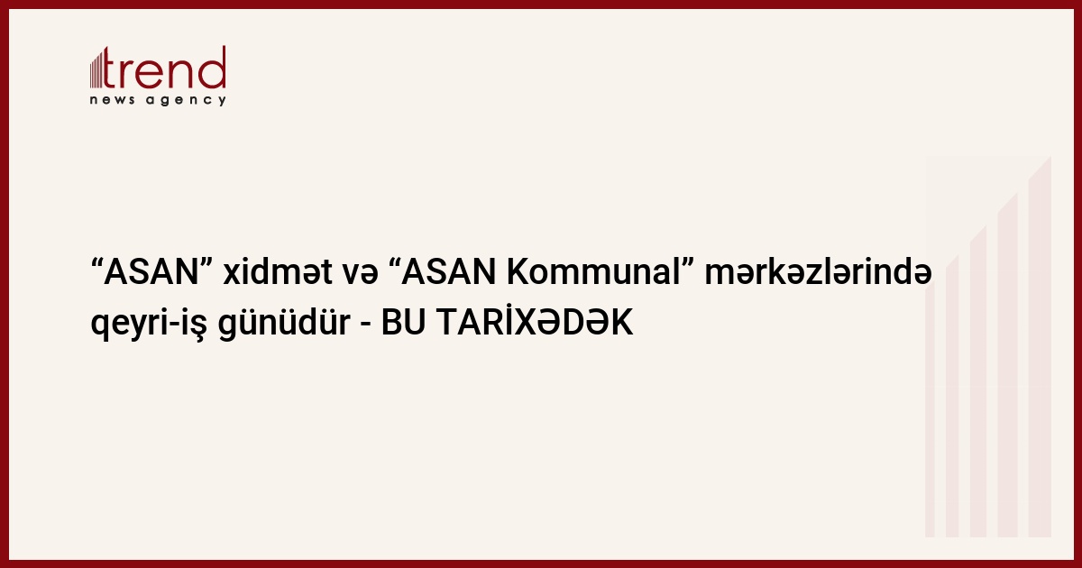 Novruz bayramı ilə əlaqədar olaraq martın 24-dək “ASAN xidmət” və “ASAN Kommunal” mərkəzlərində qeyri-iş günüdür.