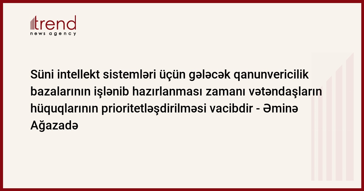 Trend-in məlumatına görə, bunu Milli Məclisin deputatı, ATƏT-dəki nümayəndə heyətinin üzvü Əminə Ağazadə Parlamentlərarası İttifaqın 148-ci Assambleyası çərçivəsində Demokratiya və İnsan Haqları Daimi Komissiyasının “Süni intellektin demokratiyaya, insan haqlarına və qanunun aliliyinə təsiri” mövzusunda keçirilən iclasında çıxışı zamanı deyib.