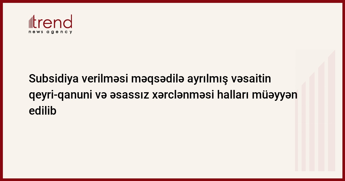 Kənd təsərrüfatı sahəsində məhsul istehsalçılarına subsidiya verilməsi məqsədilə ayrılmış vəsaitin 8,5 mln. manatının qeyri-qanuni və əsassız xərclənməsi halları müəyyən edilib.