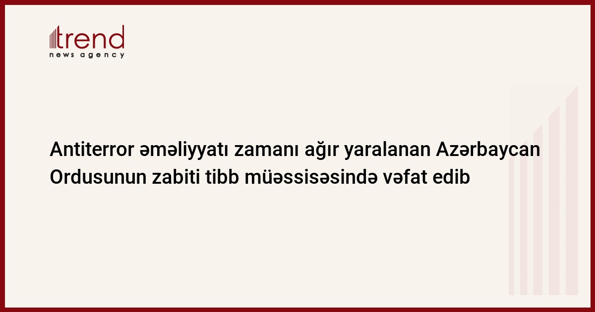 2023-cü ilin 19-20 sentyabr tarixlərində Qarabağ iqtisadi zonasında həyata keçirilən antiterror əməliyyatı zamanı ağır yaralanan Azərbaycan Ordusunun zabiti leytenant Bağırov Ülvi Hənifə oğlu 7 aprel 2024-cü il tarixində müalicə olunduğu tibb müəssisəsində vəfat edib.