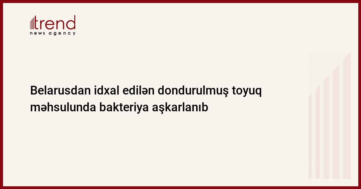 Belarusdan idxal edilən dondurulmuş toyuq məhsulunda salmonella aşkarlanıb.
