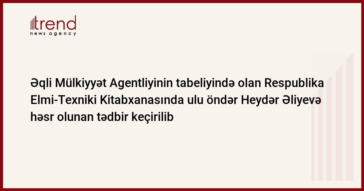 Mayın 10-da Azərbaycan Respublikası Əqli Mülkiyyət Agentliyinin tabeliyində olan Respublika Elmi-Texniki Kitabxanasında (RETK) görkəmli dövlət və siyasi xadim, müasir müstəqil Azərbaycanın banisi ümummilli lider Heydər Əliyevin anadan olmasının 101-ci ildönümü münasibətilə tədbir keçirilib.