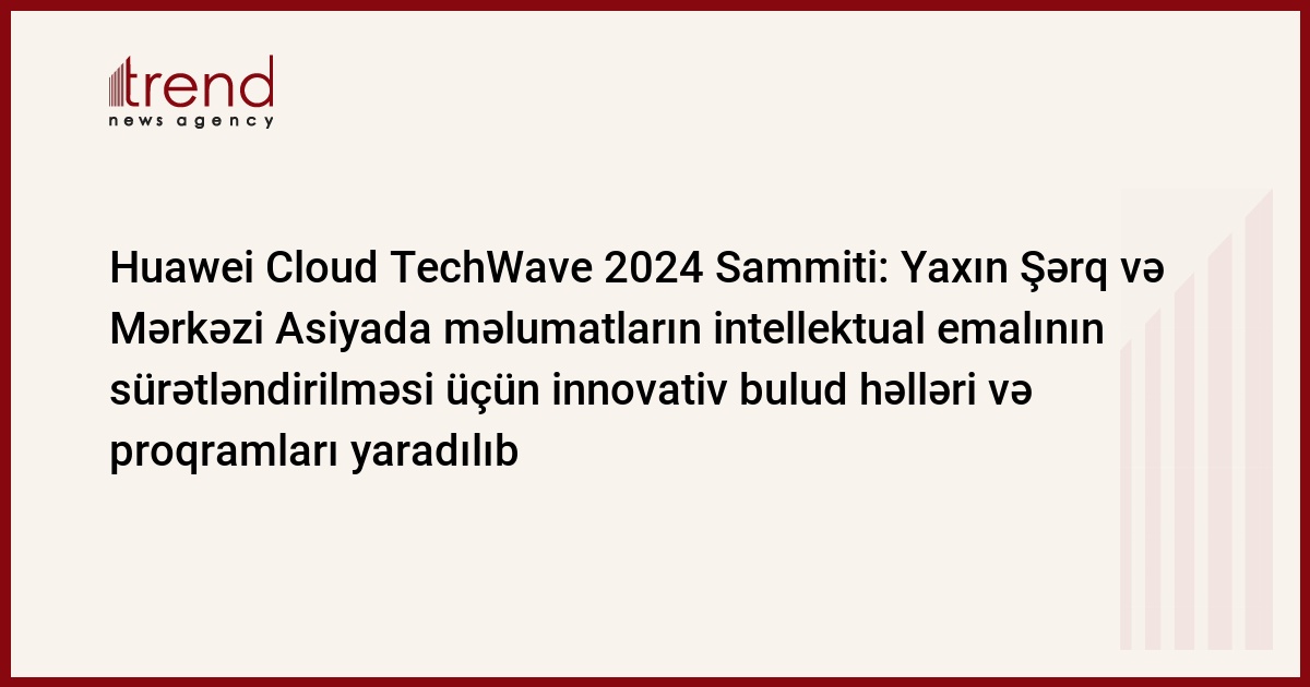 Mayın 15-də Azərbaycanda, Bakıda “Xidmət kimi bütün sahələr üzrə məlumatların intellektual emalının sürətləndirilməsi” mövzusunda Huawei Cloud TechWave 2024 Sammiti keçirilib. Tədbirdə “Huawei Cloud” tərəfindən Yaxın Şərq və Mərkəzi Asiya üçün hökumətlər və sənayelər arasında məlumatların intellektual emalının sürətləndirilməsi üçün “Huawei Cloud Süni intellekt Video xidmətinin texniki analitik hesabatı” və “Verilənlər-süni intellekt Konvergensiya Ekosistem İttifaqı”ın yeni buraxılışı kimi bir sıra yeni təqdimatlar, innovativ bulud xidmətləri və proqramlar təqdim edildi.