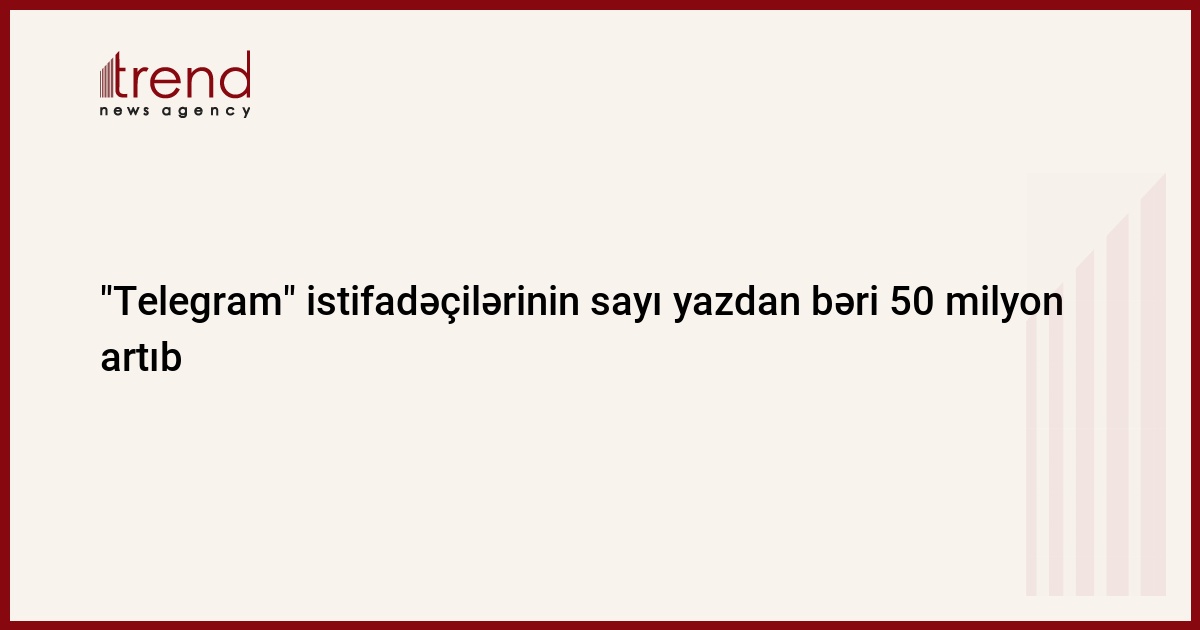 "Telegram" messencerinin aktiv istifadəçilərinin sayı 950 milyona çatıb, yaz ayı ilə müqayisədə onların sayı 50 milyon artıb.
