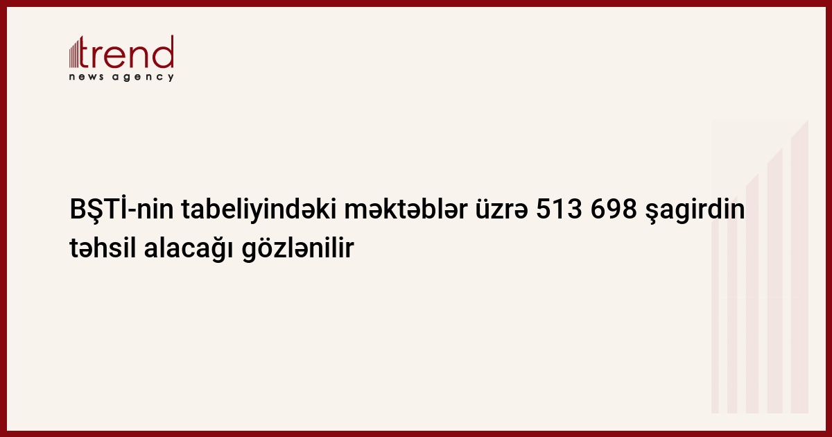 Yeni tədris ilində Bakı Şəhəri üzrə Təhsil İdarəsinin (BŞTİ) tabeliyində fəaliyyət göstərən ümumi təhsil müəssisələri üzrə ümumilikdə, 513 698 şagirdin təhsil alacağı gözlənilir.