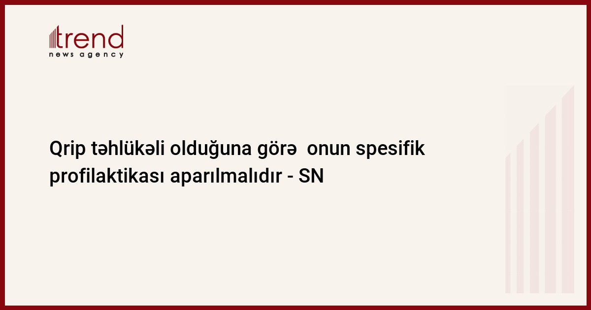 “Yəni, qripə qarşı vaksinasiya olunmaq lazımdır. Hazırda ölkədə bu cür vaksin Səhiyyə Nazirliyi tərəfindən gətirilərək, ambulator xidmət göstərən müəssisələrə paylanılıb və ərazi üzrə müraciət etməklə bundan yararlanmaq olar. Bundan əlavə, hava-damcı infeksiyalar üçün nəzərdə tutulan standart tədbirlərə ciddi riayət etməli, sağlam həyat tərzinə nail olmaqla özünü qorumaq olar”.