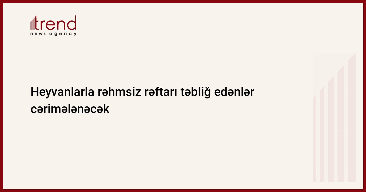 İnzibati Xətalar Məcəlləsinə təklif edilən yeni - 274-1-ci maddəyə əsasən, heyvanlarla rəhmsiz rəftarın təbliğ edilməsinə və ya heyvanlarla rəhmsiz rəftara açıq çağırışlar edilməsinə, bu cür rəftarı özündə əks etdirən materialların kommersiya məqsədləri üçün istifadə edilməsinə görə min manatdan min beş yüz manatadək məbləğdə cərimə edilir, yaxud işin hallarına görə, xətanı törədənin şəxsiyyəti nəzərə alınmaqla, bir ayadək müddətə inzibati həbs tətbiq olunur.