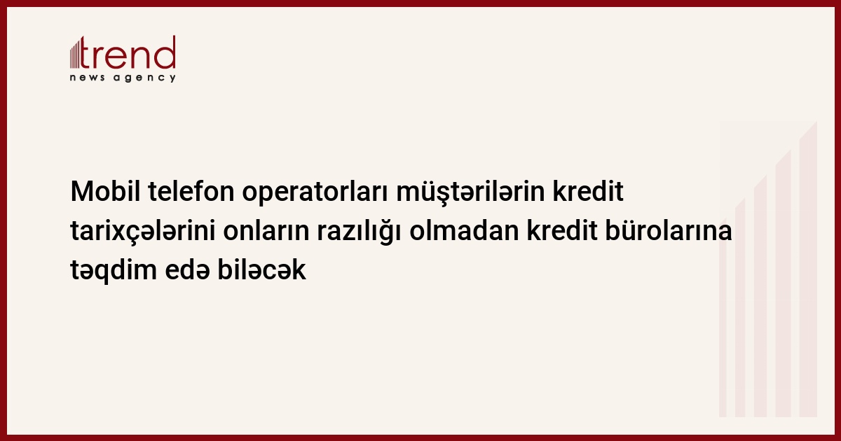 Bununla da mobil telefon operatorları müştəriləri olan kredit tarixçəsi subyektlərinin məlumatlarını onların razılığı olmadan kredit bürolarına təqdim edə biləcəklər.