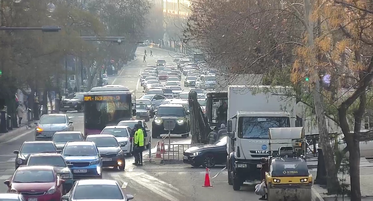 Yol polisi tərəfindən ərazidə hərəkət tənzimlənir.