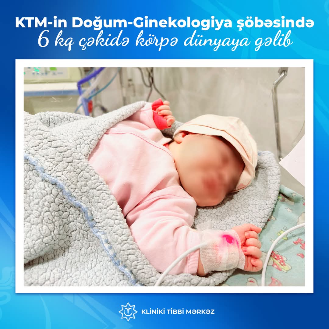 Ginekologiya şöbəsinin mama-ginekoloqu Solmaz Mehdiyevanın həyata keçirdiyi təbii doğuşla dünyaya gələn körpə müddətinə görə iri çəkili uşaq hesab olunur.