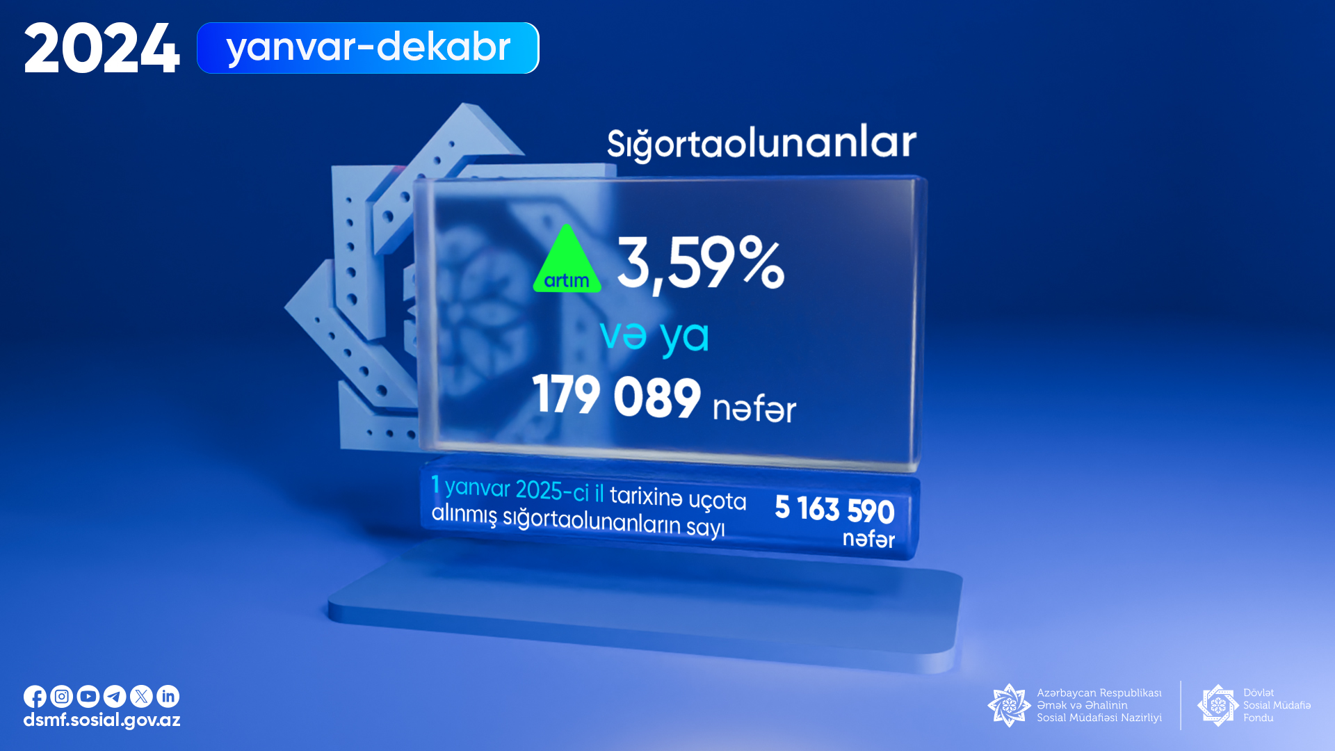 2024-cü ilin yanvar-dekabr aylarında fərdi uçot sistemində uçota alınmış sığortaolunanların sayı 179 089 nəfər və ya 3,59% artıb.