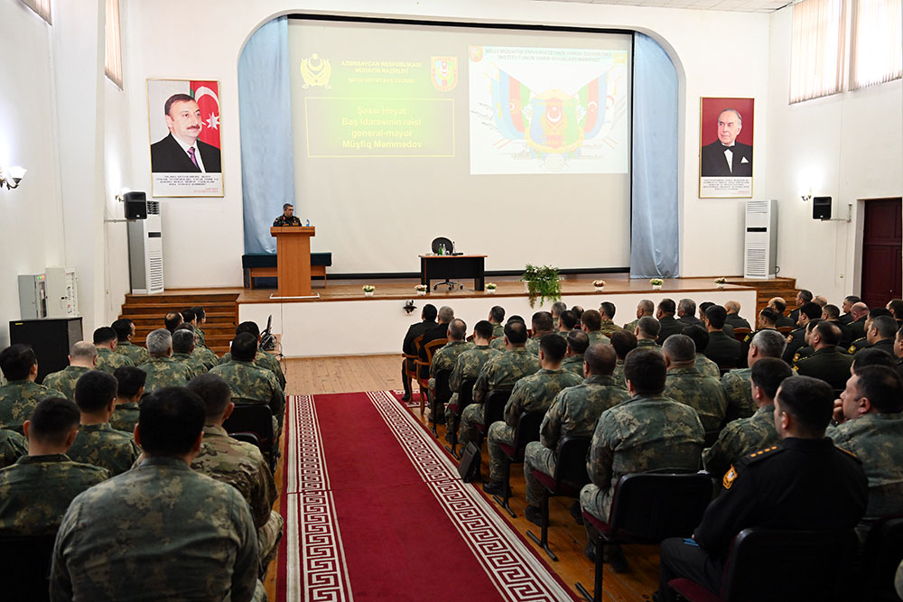 Tədbirdə Şəxsi Heyət Baş İdarəsinin rəisi general-mayor Müşfiq Məmmədov çıxış edərək Azərbaycan Ordusunda kadrların idarə edilməsi, ideoloji iş və mənəvi-psixoloji təminatın yüksəldilməsi istiqamətində ötən il ərzində görülmüş işlər, həmçinin cari ildə qarşıda duran əsas tapşırıqlar haqqında danışıb.