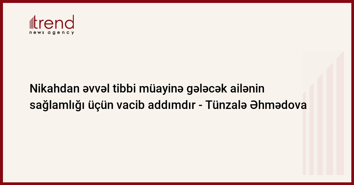 T.Əhmədova qeyd edib ki, nikahdan əvvəl müayinə sadəcə formal prosedur deyil, həm valideynlərin, həm də gələcək övladların sağlamlığı üçün məsuliyyətli seçimdir: