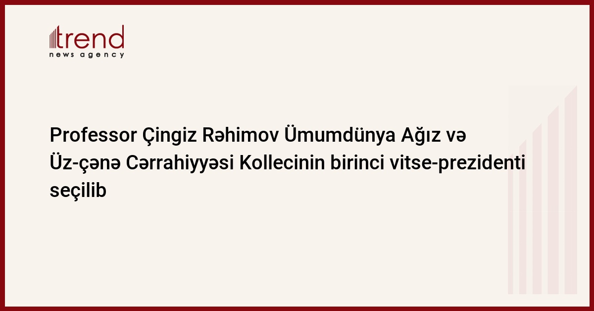 Azərbaycan Tibb Universitetinin Üz-çənə cərrahiyyəsi kafedrasının sədri, professor Çingiz Rəhimov 2025–2027-ci illər üçün Ümumdünya Üz-çənə Cərrahiyyə Kollecinin (ICMFS) birinci vitse-prezidenti seçilib.